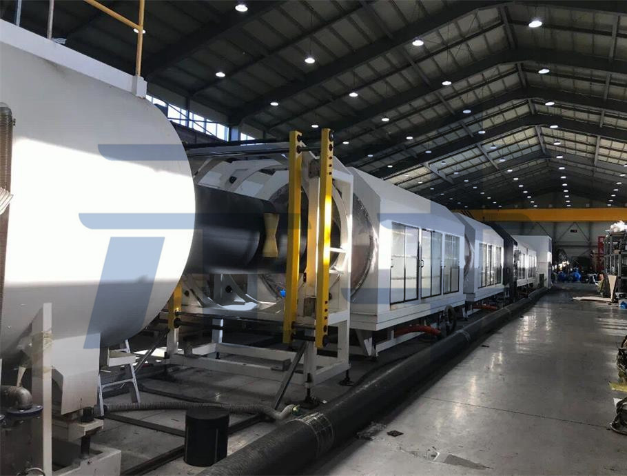 真空定徑擠出機(jī)主要用于大口徑PE管的生產(chǎn),產(chǎn)品主要用于聚氨酯直埋保溫管道的外層,中間層為聚氨酯發(fā)泡層,內(nèi)層為鋼管,也可生產(chǎn)供水管、排水管等。